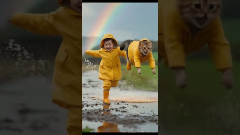 #cute Baby and cat Puddle Jumping After the Rain” #shortvideo