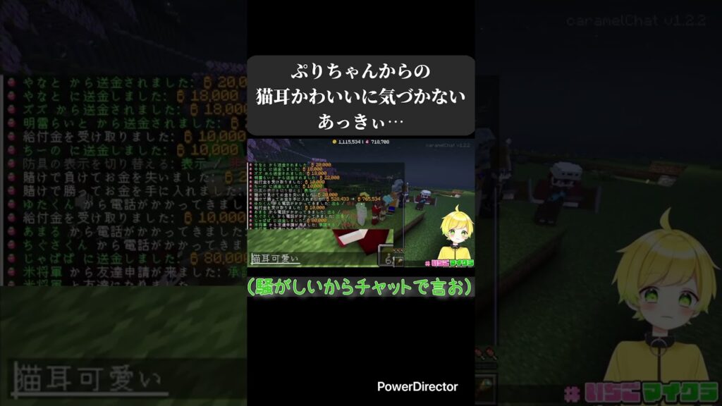 ぷりちゃんからの猫耳かわいいに気づかないあっきぃ【いちごマイクラ切り抜き】【あっきぃ】【ぷりっつ】