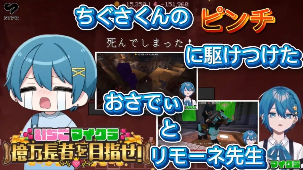 【#いちごマイクラ】ちぐさくんのピンチに駆けつけたおさでいくんとリモーネ先生がヒーローな件【ちぐさくん切り抜き】