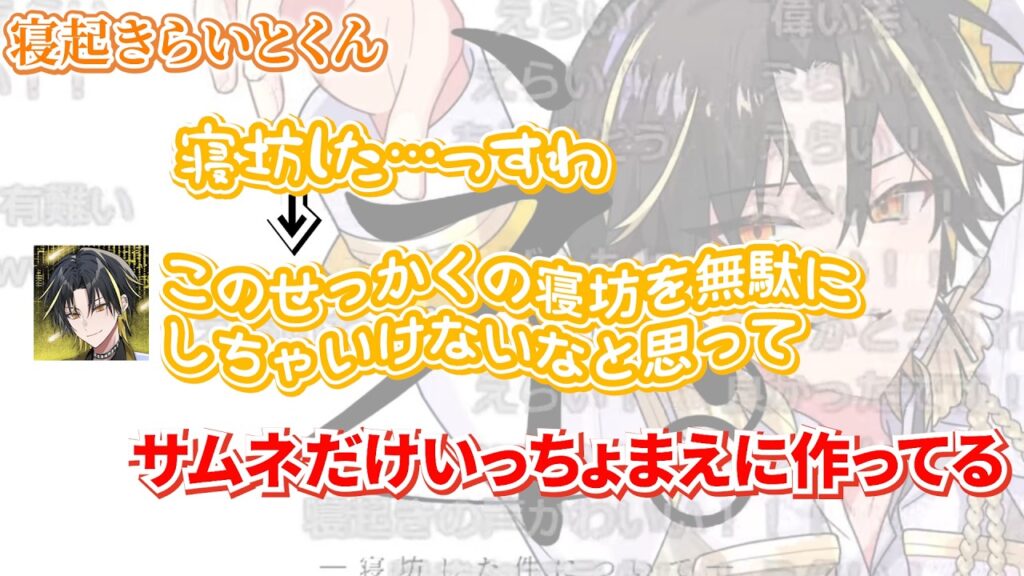 【文字起こし】寝起きだけどサムネだけ完璧に用意しているお寝坊さんのらいとくん【めておら/切り抜き/明雷らいと/stprclip/朝枠/寝起き/寝坊】