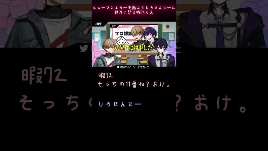 ヒューマンエラーを起こすしろせんせーと静かに怒る暇72くん【シクフォニ切り抜き】【暇72切り抜き】【女子研究大学切り抜き】【しろせんせー切り抜き】