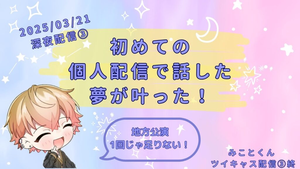 2025/03/21深夜配信③終 初めての個人配信で話していた 夢が叶った!【シクフォニ みこと】【文字起こし】【切り抜き】 ツイキャス個人配信 2025/03/21③