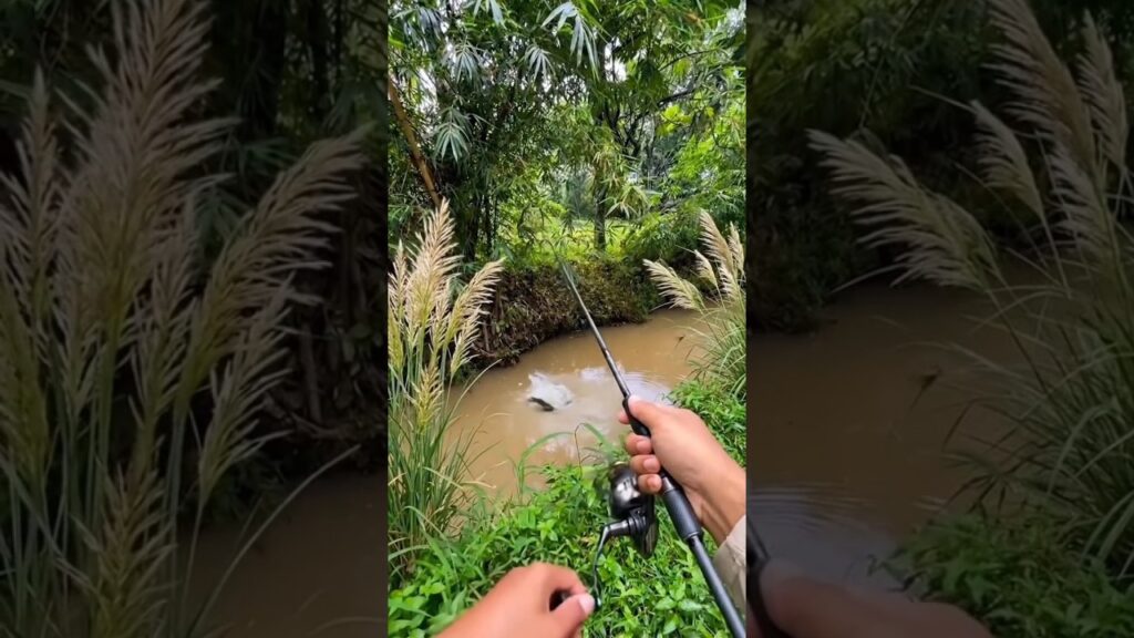 Fishing for snakehead fish in a murky river after the rain